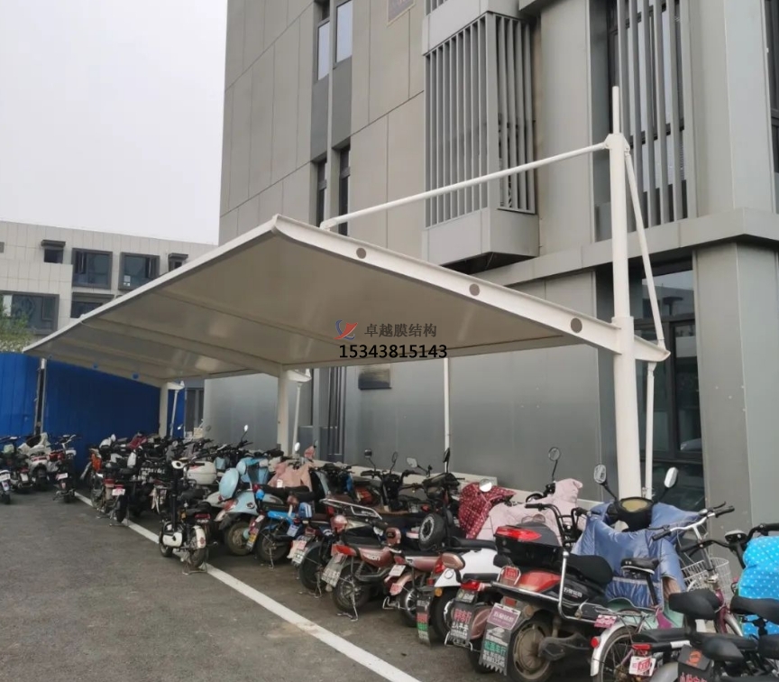 膜結構車棚在與以往的舊式車棚的比較中,整體能承受的載荷大很多,膜結構受力點小,單位尺寸上能承受的壓強高,膜結構車棚都穩固如山,并且膜結構車棚的透光性達到13%,不會因為長時間的直曬變黃,也不會物理特性發生變化,比如變脆,軟化等現象。