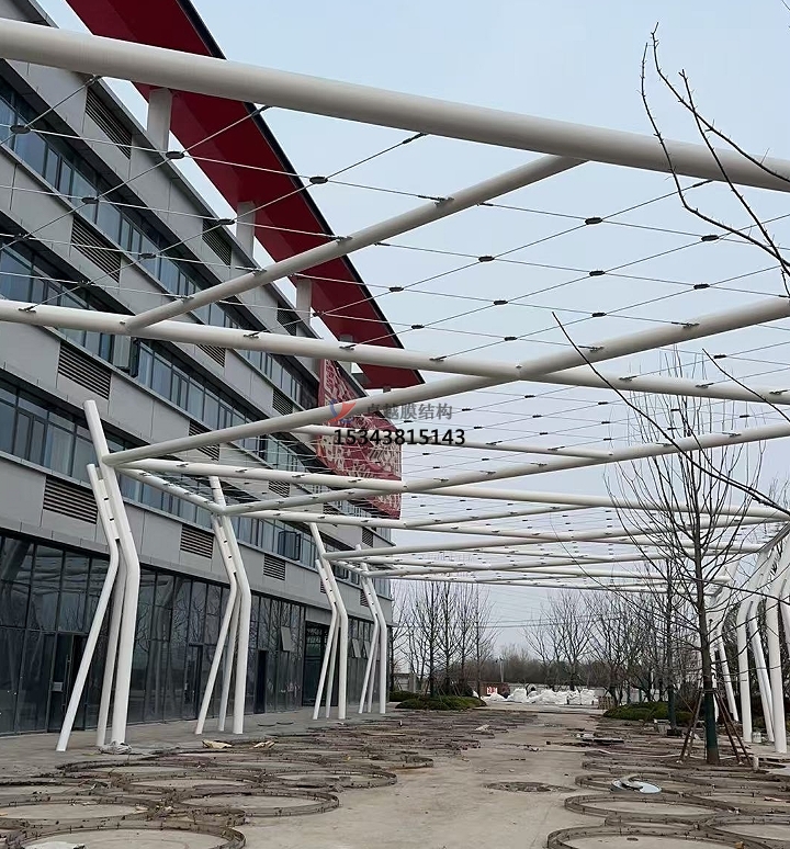 從結(jié)構(gòu)構(gòu)成角度,索膜結(jié)構(gòu)一般包含膜面、索系和支承結(jié)構(gòu)三大部分。膜面是直接承受外部荷載并形成建筑空間圍合的部分,其形狀豐富多樣,可根據(jù)設(shè)計(jì)需求形成單曲面、雙曲面乃至更為復(fù)雜的自由曲面。索系則包括脊索、谷索和邊索等,脊索通常設(shè)置在膜面較高位置的交匯處,起到提升膜面高度、增強(qiáng)膜面穩(wěn)定性的作用;谷索位于膜面較低位置的交匯處,輔助膜面排水并增強(qiáng)結(jié)構(gòu)整體性;邊索環(huán)繞膜面邊緣,將膜面的拉力傳遞至支承結(jié)構(gòu)。支承結(jié)構(gòu)常見的有鋼結(jié)構(gòu)、混凝土結(jié)構(gòu)等,它承擔(dān)著整個(gè)索膜結(jié)構(gòu)體系的重量,并將荷載傳遞至基礎(chǔ),為索膜結(jié)構(gòu)提供穩(wěn)固的支撐。