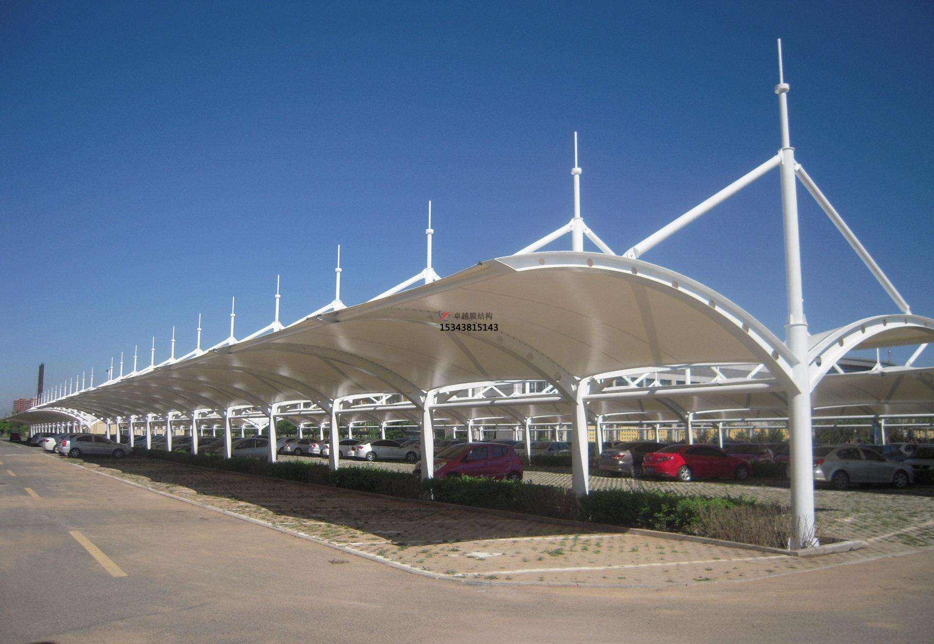 膜結構車棚是現代非常流行的一種車棚建筑,對于這類車棚的防雷措施應根據不同的設計造型及覆蓋面積進行設計。當支承膜面的鋼構桅桿、柱采用油漆或鍍鋅防腐時,可直接作為避雷線和垂直接地導電線。如果桅桿采用噴塑等防腐,尚應加避雷線,但可作為地線。