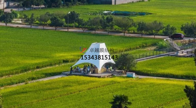 設計方于是設想了一種快速搭建的輕型結構:塔(樓梯)在中間和架在水池上的操作空間形成一個鋼結構的整體,樁基打到池底以下的持力層,形成穩定的核心結構;塔頂和平臺的四角以張拉膜結構和鋼索拉接就是亭子的屋頂,形成輕質的半透明的外部結構。建成后塔亭經常聚集了很多人,有當地的村民,有游客,還有小動物。他們或談天,或嬉鬧,或休息,或登上塔頂遠望,這正是設計最初的愿景。