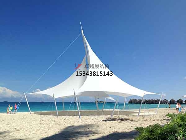 2.膜結構能提供豐富多彩的用途,與周圍環境溶為一體并創造出讓人們盡情享受的快樂空間。它充分展示了結構構件清晰受力的藝術之美并巧妙的整合周圍的環境展示給人們一種高貴典雅、浪漫溫馨之感!