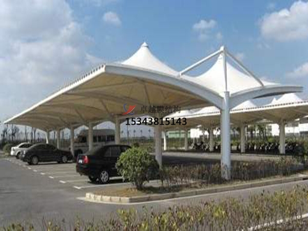 綠色膜結構車棚配合舒適的結構設計原則,提倡自然日形,膜結構停車棚車棚價格,尋求原材料原始自然粗糙,膜材料做工精細,結構靠箔,兩種對比之間透露出陽光、自然的味道。