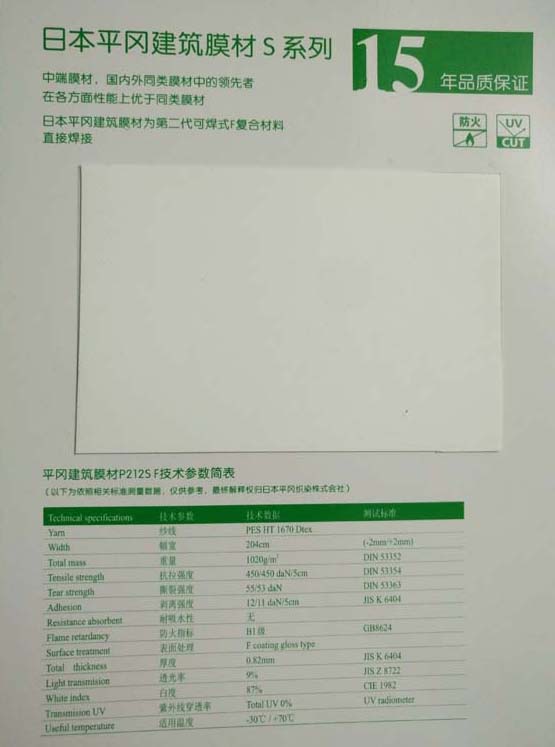日本平岡建筑膜材中國市場很好的推系列: